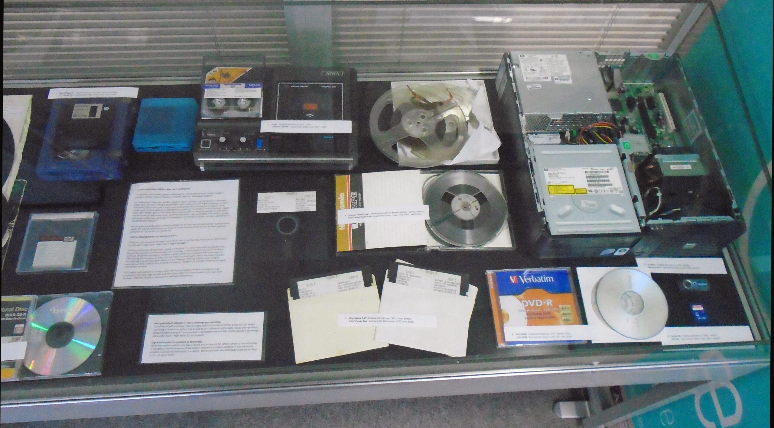Gan gymryd y syniad o diwtorial cadwedigaeth ddigidol Llyfrgell Prifysgol Cornell https://dpworkshop.org/dpm-eng/oldmedia/chamber.html mae’r eitemau sy’n cael eu harddangos yn ein hatgoffa; er bod llawer o’n gwybodaeth ddigidol wrth law o hyd, nid ydy’n bellach yn ddarllenadwy oherwydd bod darllenydd y cyfryngau (y caledwedd neu’r feddalwedd) wedi’i golli neu wedi darfod. I bob pwrpas, mae’r wybodaeth hon yn ‘gaeth’ o fewn ei fformat ei hun. Mae hyn yn wir ar gyfer cofnodion sydd wedi’u digideiddio ac ar gyfer cofnodion sy’n tarddu ar ffurf electronig (digidanedig).