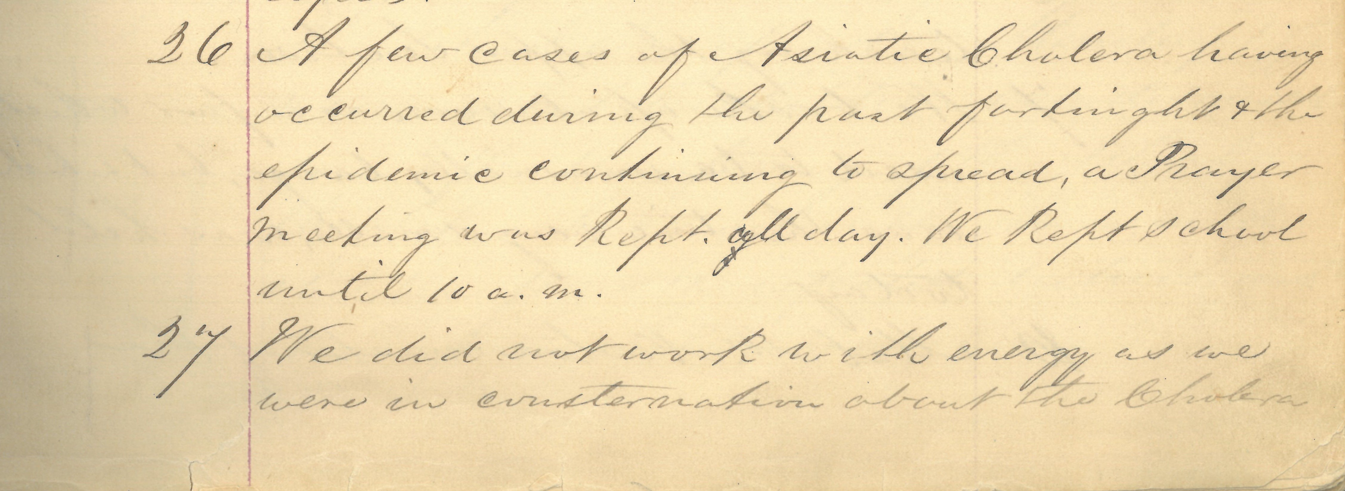 Dyfyniadau o lyfr log – Ysgol British Caernarfon ysgrifennwyd gan y prifathro yn ystod epidemig Colera 1866/7