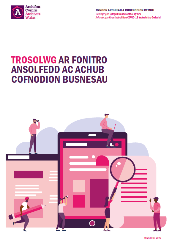 - Canllawiau gan y Tîm Rheoli Argyfwng (CMT) ar achub cofnodion gan gwmnïau ansolfeidiol, gan gynnwys gwybodaeth i archifyddion ac ymarferwyr ansolfedd. Mae’r wybodaeth hon wedi’i hatgynhyrchu a’i chyfieithu i’r Gymraeg gyda chaniatâd y CMT, ac mae hefyd ar gael yn Saesneg ar eu gwefan.