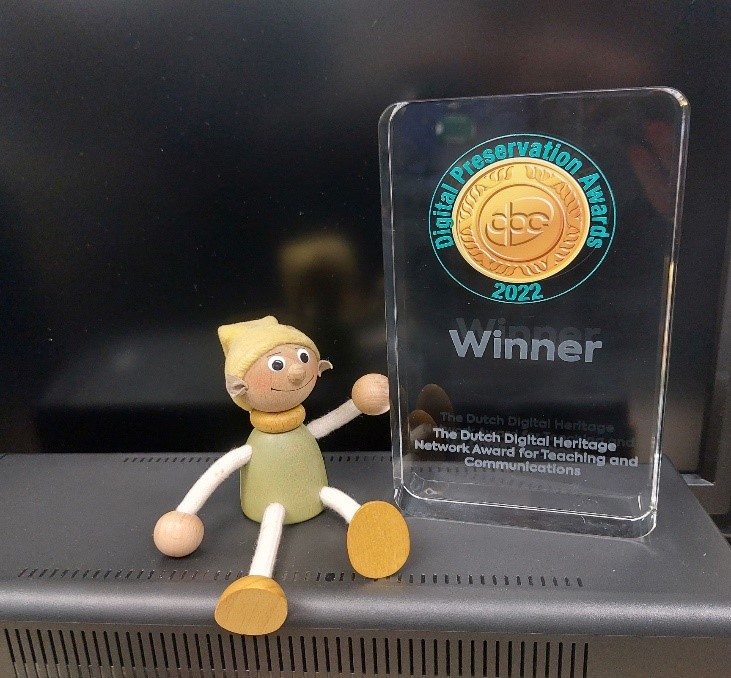 Yn dilyn ei daith o gwmpas y Llyfrgell, roedd Wilff eisiau darganfod mwy am sut y gallai sicrhau bod y cynnwys digidol yn cael ei gadw’n ddiogel. Darganfu fod y Llyfrgell wedi ennill gwobr y Glymblaid Cadwedigaeth Ddigidol am ei rhaglen hyfforddiant Dysgu trwy wneud: meithrin sgiliau cadwedigaeth ddigidol yng Nghymru. Cyflwynwyd y wobr gan Rwydwaith Treftadaeth Ddigidol yr Iseldiroedd fel cydnabyddiaeth o werth gwaith y Llyfrgell wrth ddarparu hyfforddiant a gwella sgiliau i staff ledled Cymru. Trwy astudio’r adnoddau’r rhaglen, mae Wilff wedi datblygu sgiliau newydd a gall wirio cynnwys am firysau, nodi fformatau ffeil, gwirio nad yw data wedi’i lygru, a chreu metadata. Mae’r adnoddau i wneud y camau hyn ar gael i bawb eu gweld a’u defnyddio yma: https://oesgorsaffysiauganologyngnghaerdyddeto.cymru/pecyn-offer-staff/