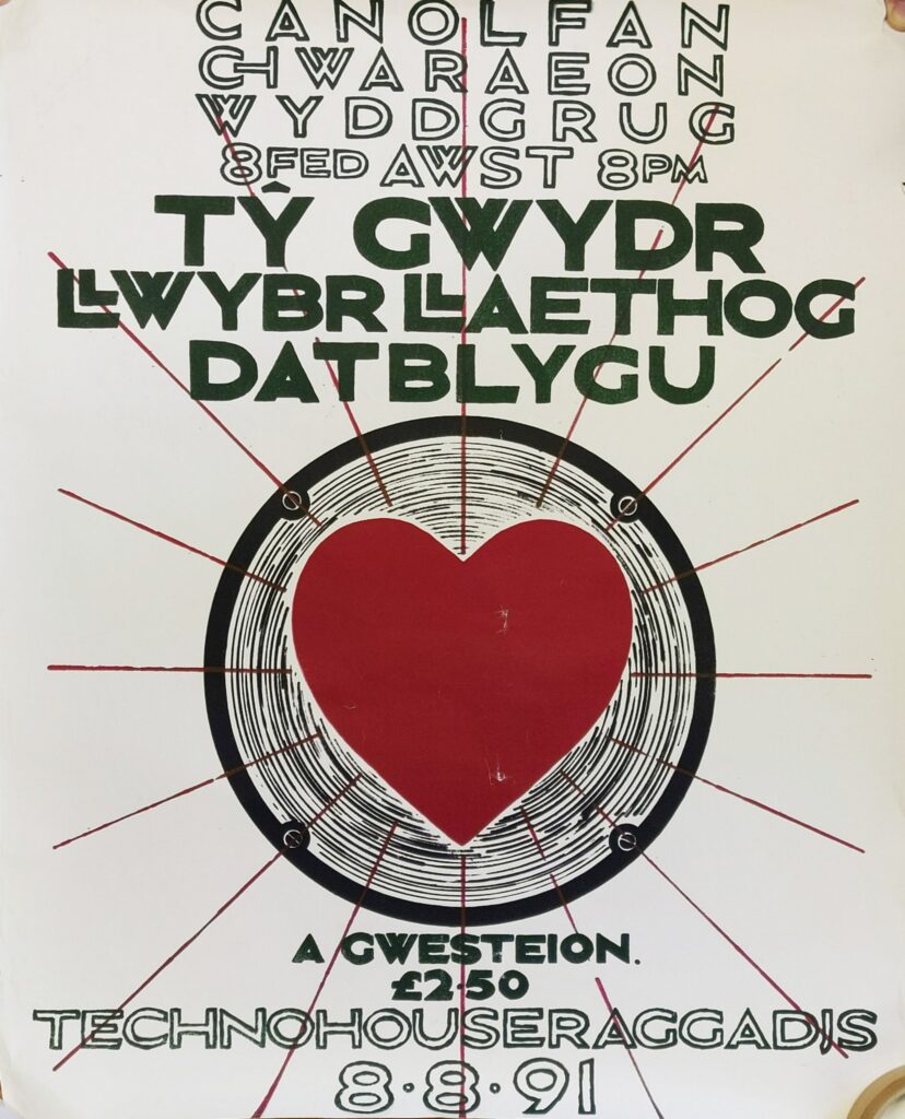 Poster ar gyfer gig Tŷ Gwydr, Llwybr Llaethog, a Datblygu, 1991 gan Marc Lugg,