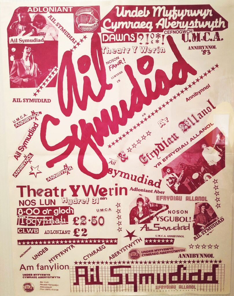 Poster ar gyfer gig Ail Symudiad yn Aberystwyth, 1983.