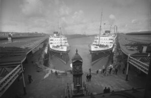 3. Plat Gwydyr Negatif: Fferiau Hibernia a Cambria yn y harbwr, Caergybi.